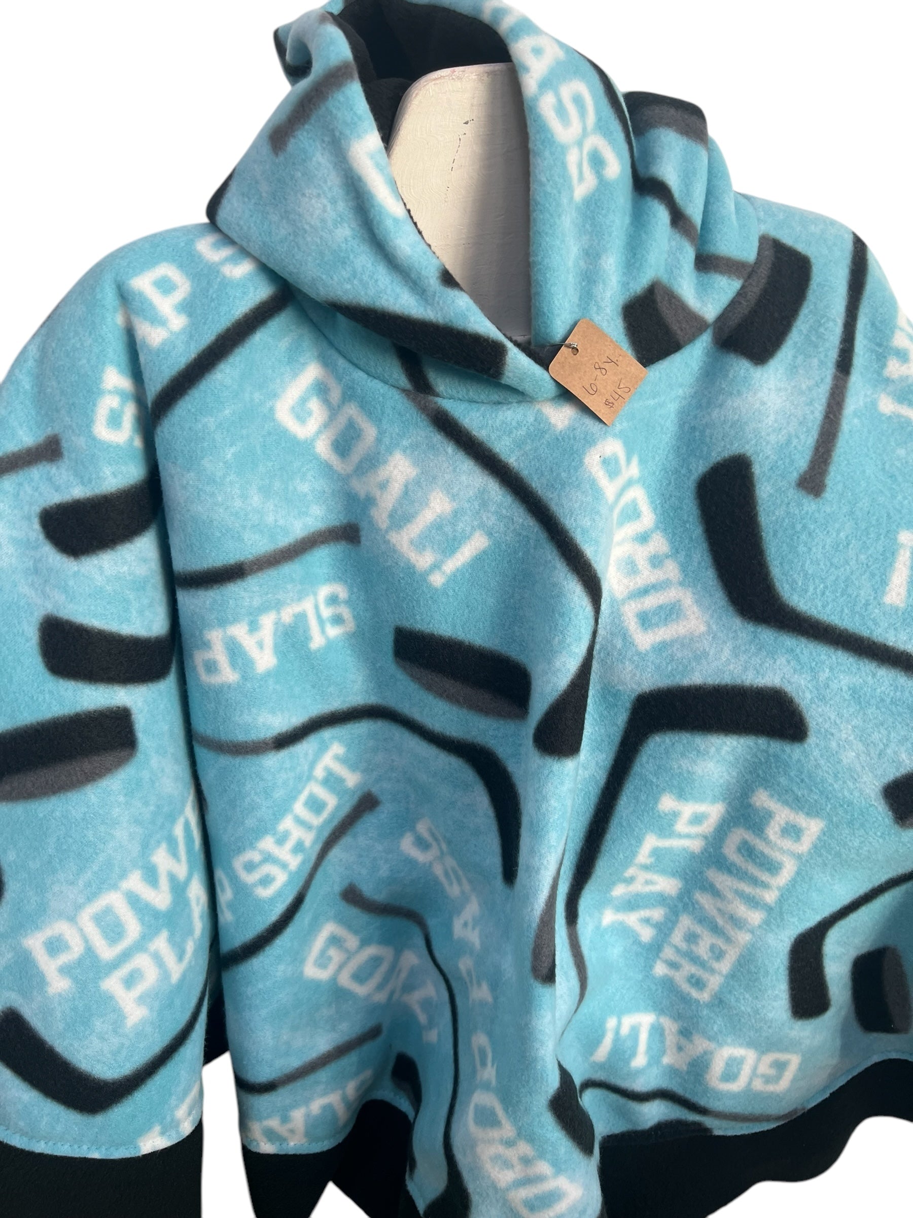 6-8 year old Hockey/Slap Shot Poncho with Black Lining