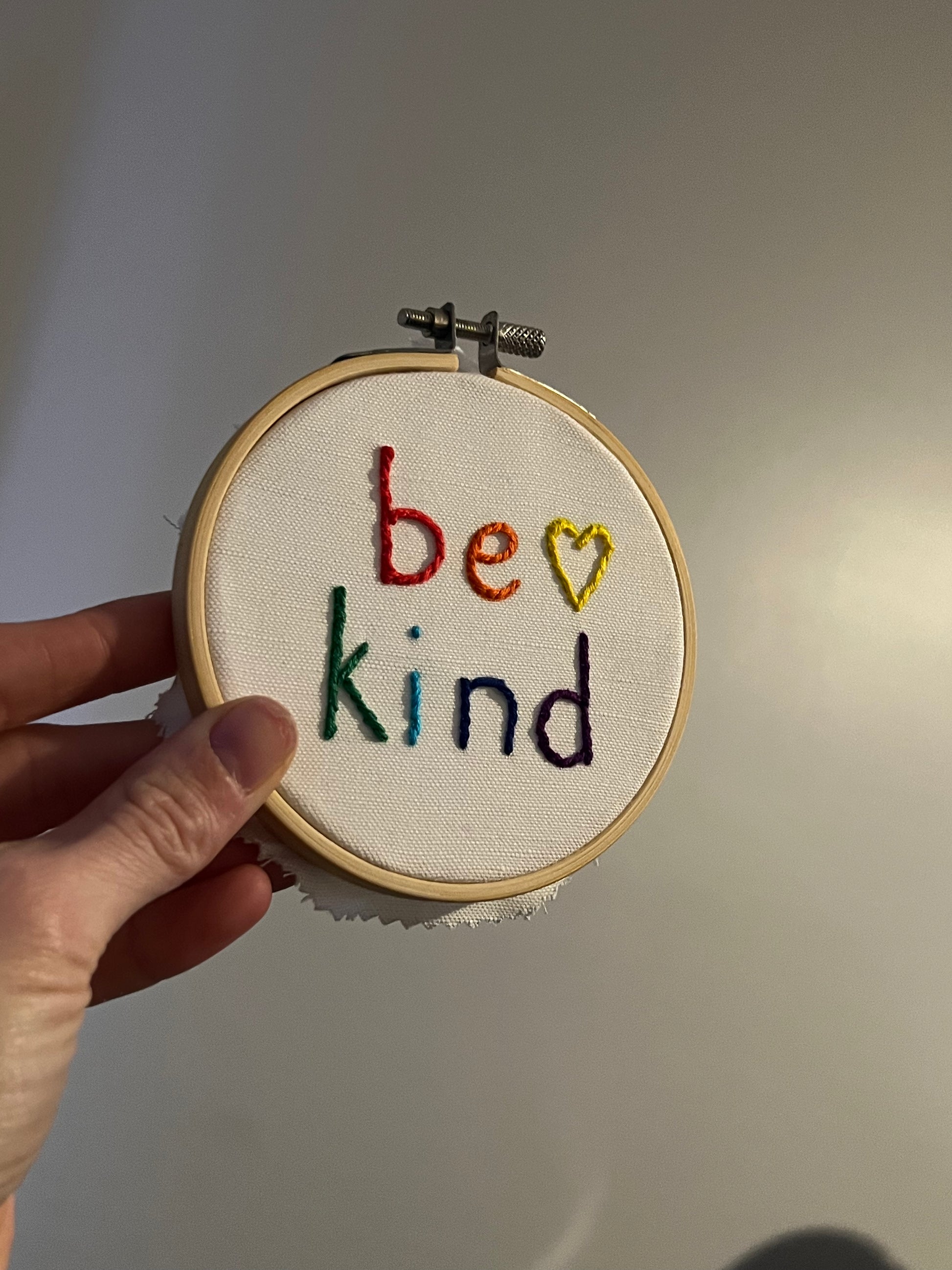 An embroidery kit for beginners and experienced stitchers. The ’Be kind’ kit comes with a 4 inch wooden/bamboo hoop, 2 needles and a thread count suggestion card. Thread colors shown are what comes with the kit. You will also find a stitch guide complete with written instructions and access to tutorial videos.