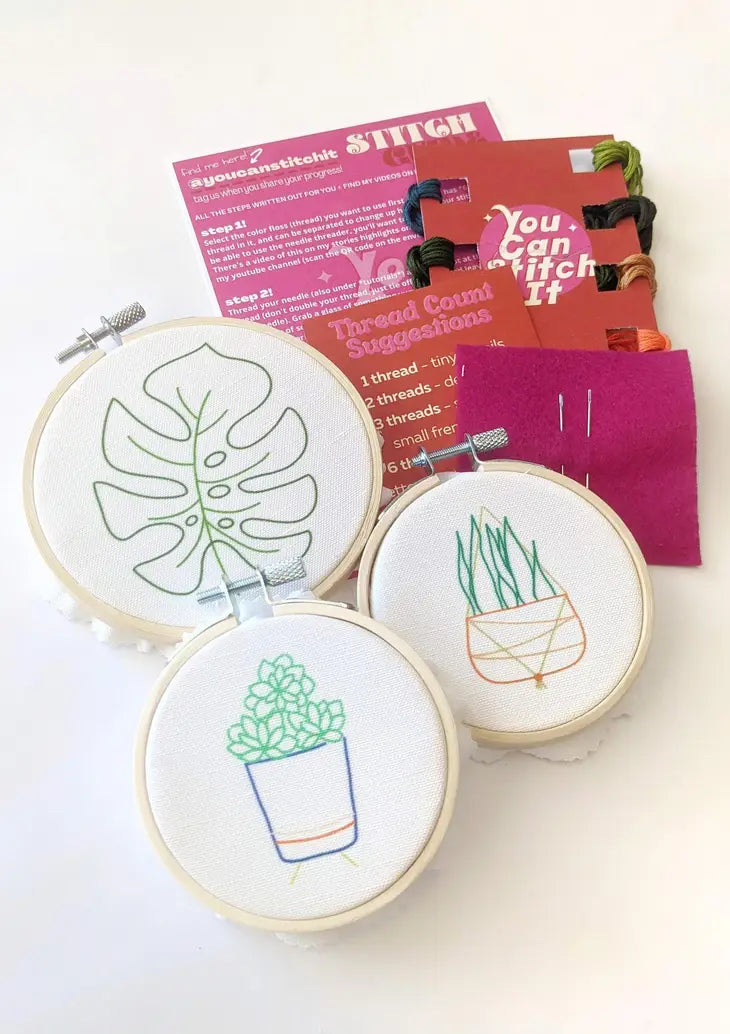 Love plants? Me too! Pick up the plant trio embroidery kit and spend some time working with your hands to create this adorable set.